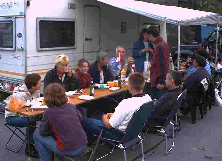 Wir konnten zwischen den Industriegebäuden auf Grassflächen unseren Auslauf aufbauen