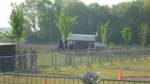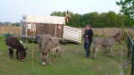 Auf einer grossen Koppel bauten wir unseren Paddock für ANGI, FANNY, WINNIE und FELIX auf, der Eselanhänger diente als Stall