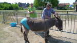 mit den Eseln. Abends gab es ein grosses Grillfest. Sonntag ging es schon früh zur Kirche in Groeningen und die Esel wurden gesegnet. Anschliessend gab es wieder viel Spass auf dem Hof. Das Wetter war an