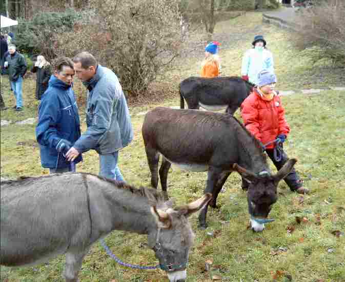 Am 06. Dezember 2003 sind wir mit SNOOPY, INDIRA, ANGI und HEXE mit VINO zu Ina von meine2esel nach Burbach gefahren, und hatten mit den Gästen und den Eseln der Gastgeberin viel Spass bei der Wanderung. |