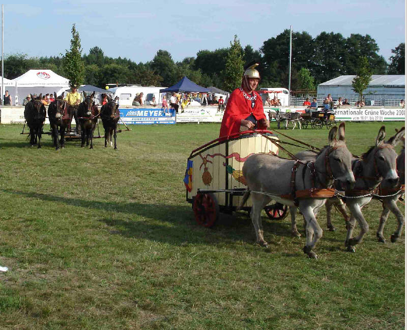 Samstag, 18.08: Heute begann der offizielle Teil des Treffen. Es gab die Tierbewertung, das Wiegen der Tiere, den Hindernisparcours und den Zugwettbewerb. Abends gab es in der randenburghalle ein Abendprogramm mit Sketchen, Filme, Quiz und Musik. Für unsere Esel hatten wir zwei Pflegekinder aus der näheren Umgebung, da unsere Kinder in NRW keine Ferien mehr hatten.