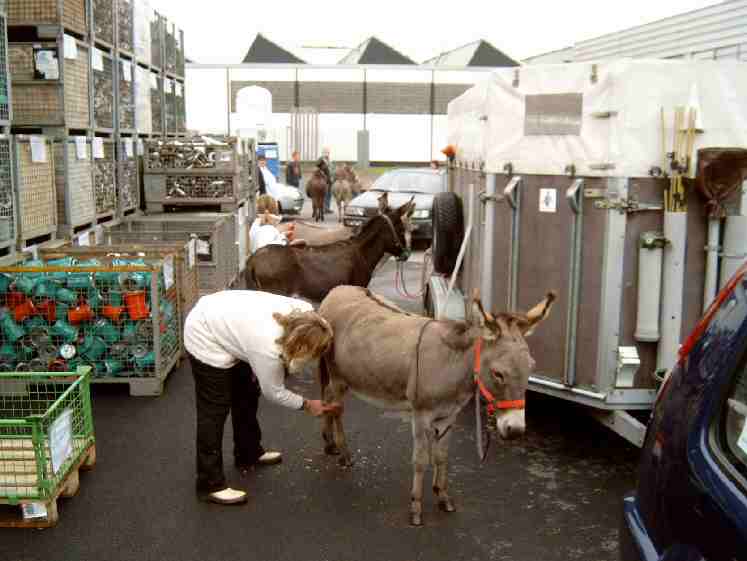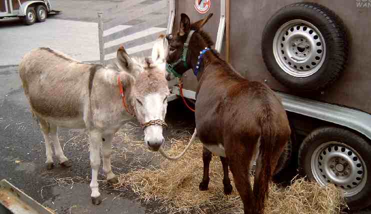 Eselpflege im Innenhof der Fa. Wilo.