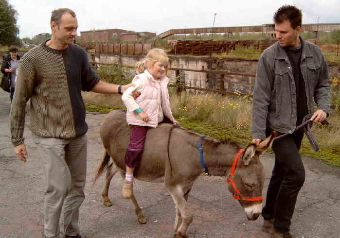 Tag der offenen Tür bei Firma Wilo-Pumpen am 25.09.2004 mit zwei Eselwanderungen über das Phoenix-West-Gelände